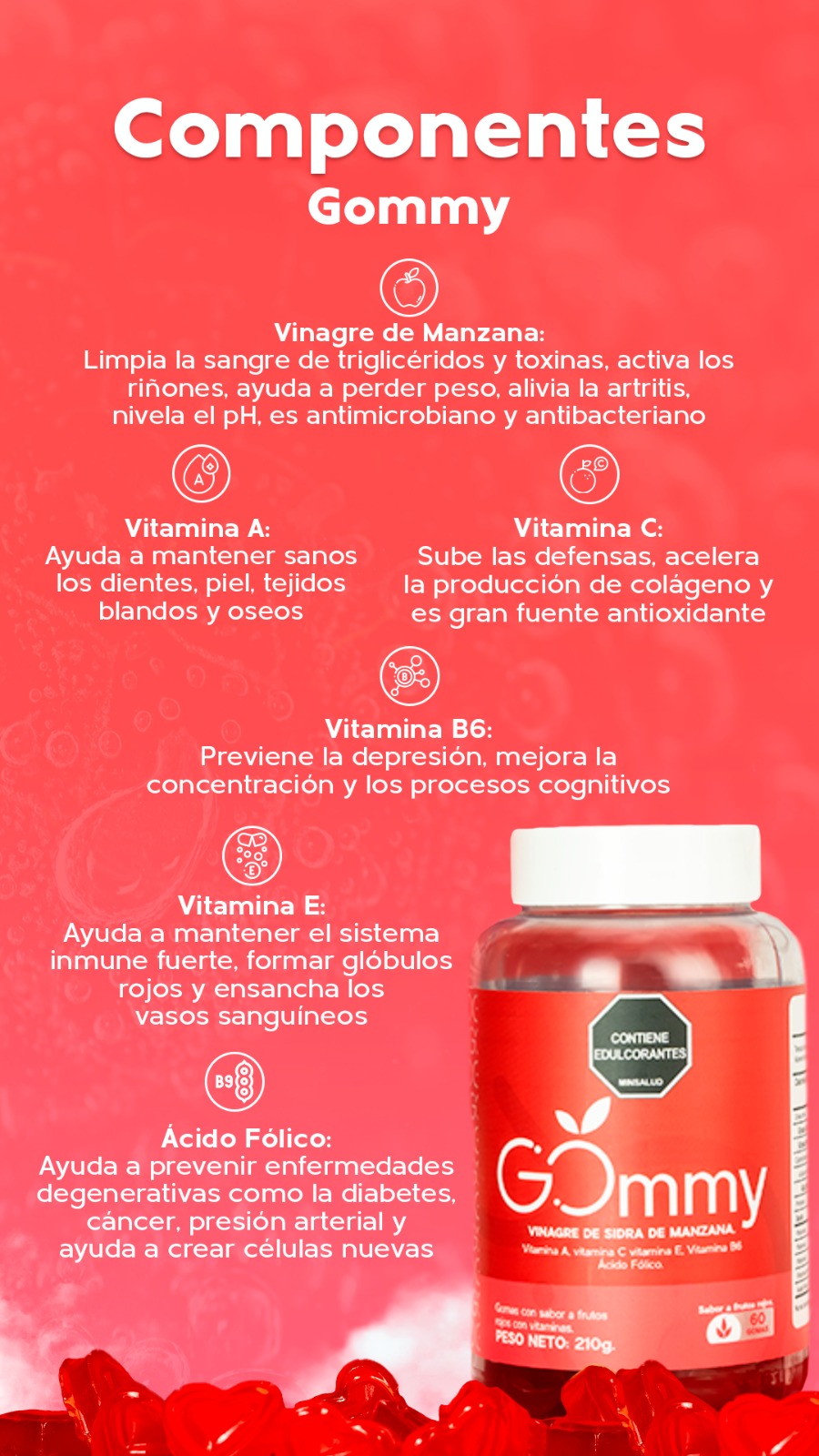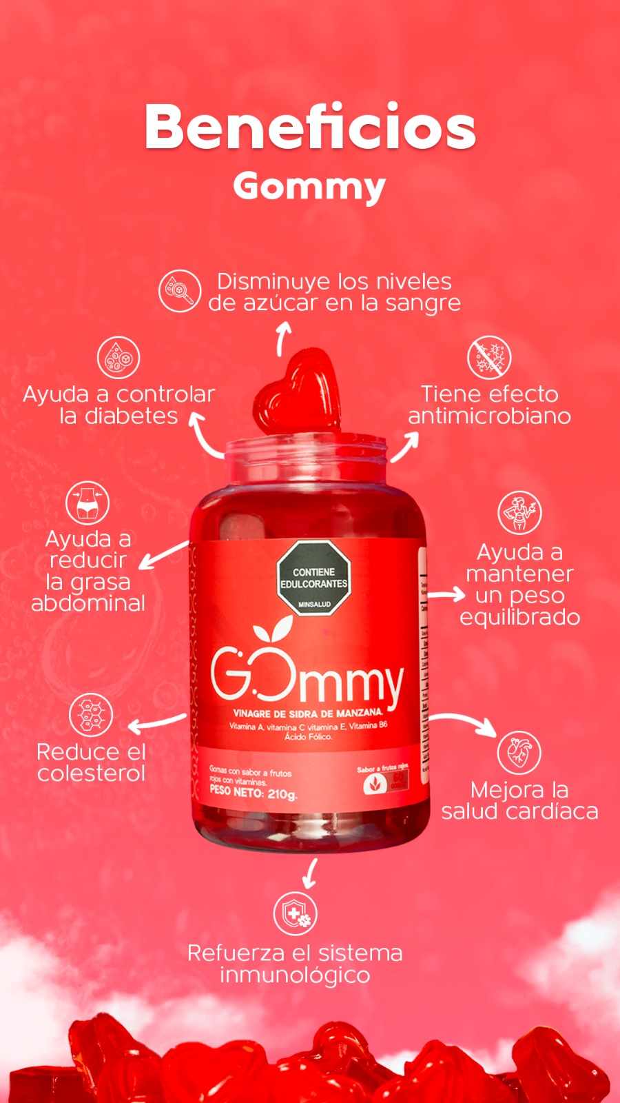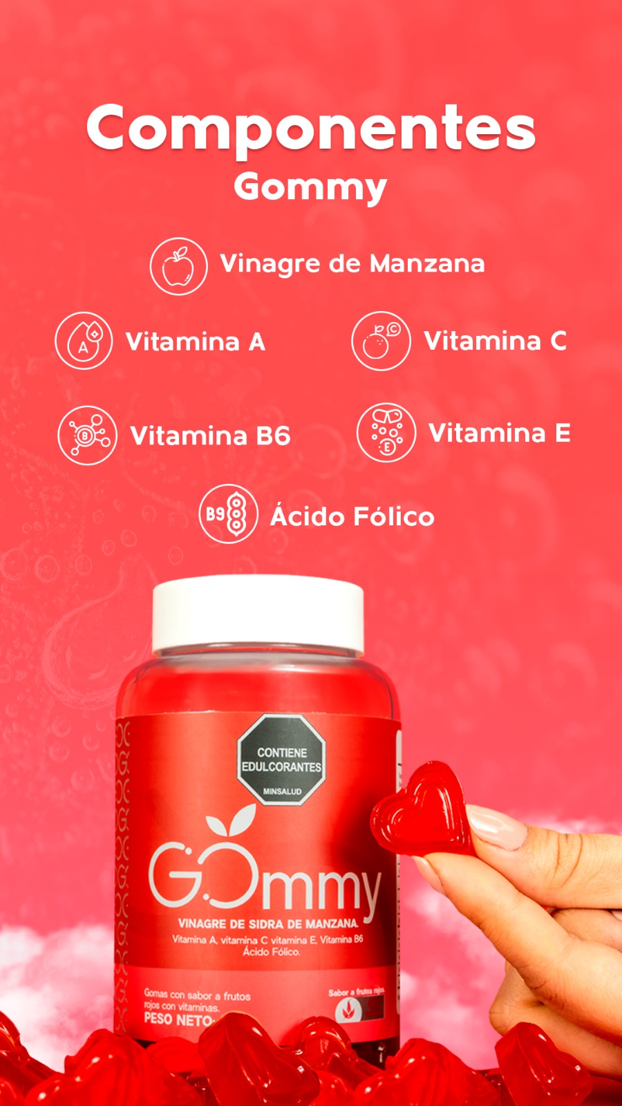 Todas las propiedades del vinagre de sidra de manzana contenidas en una gomita con el delicioso sabor a frutos rojos.